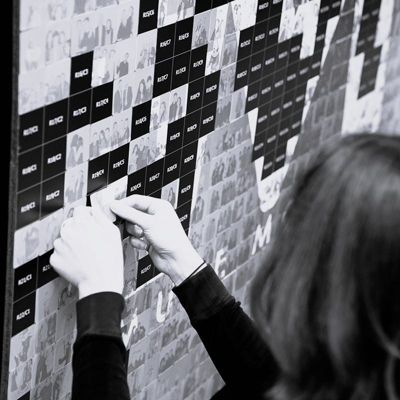 • Print – we print a sticker of each photo with a unique grid number on the back. Your guests find their number on a mosaic board and stick it in the right spot.